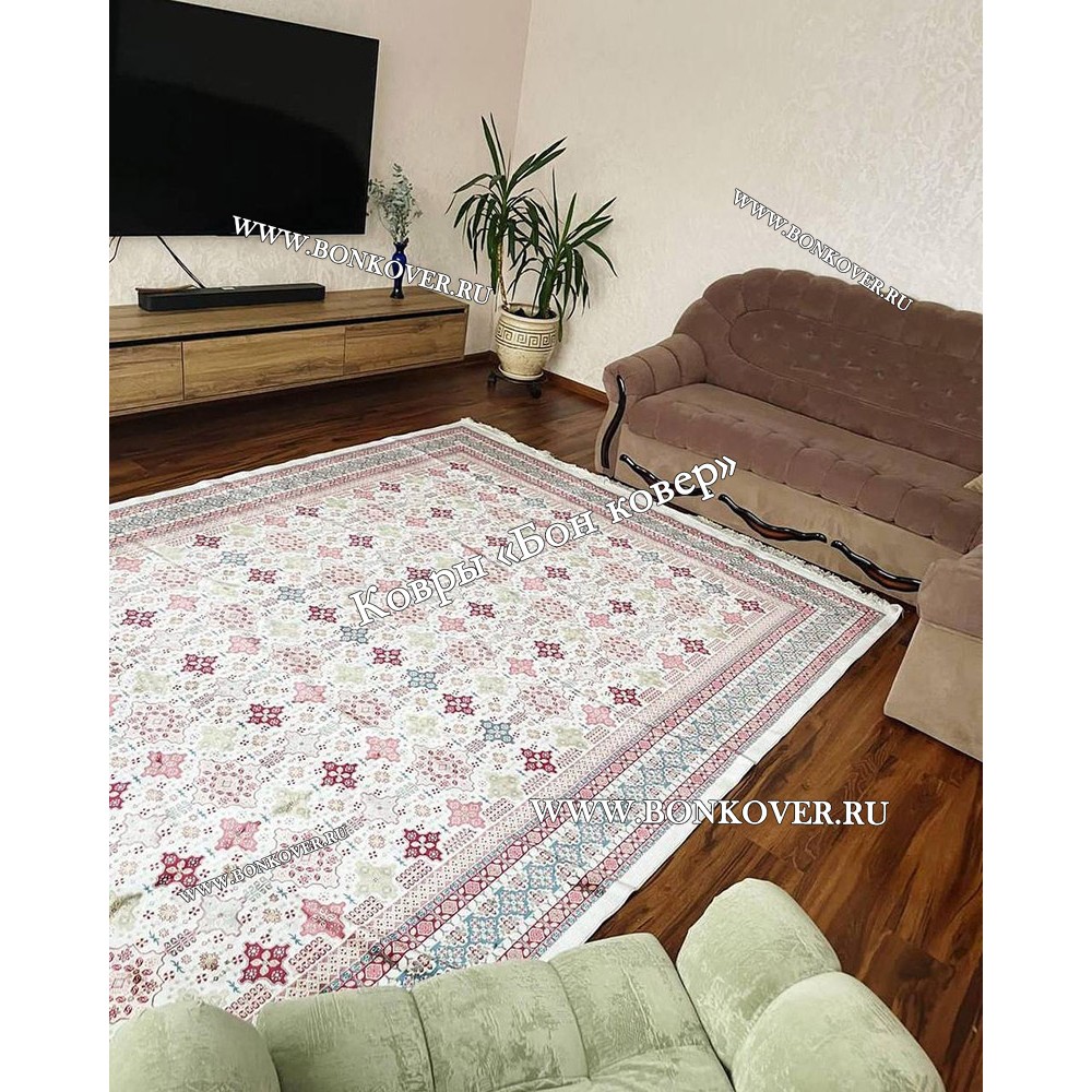 07.07.2020 Читать полный отзывИскала что-нибудь особенное, и в то же время неброское. И тут – вау! Такой пестрый коврик и в то же время спокойные тона – это большая редкость. Думала не долго и купила как раз в размер комнаты. Для уборки не придется двигать мебель. Уже несколько раз чистила пылесосом, весь мусор отлично «эвакуиру..