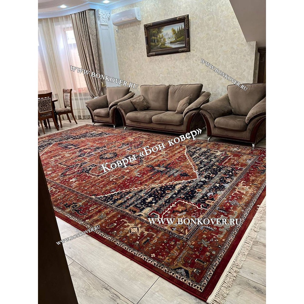 08.12.2021 Читать полный отзывКупила шикарный ковер. Натуральный состав, приятный на ощупь. Мы ходим по нему босыми ногами, сидим на нем чаще, чем на диване. Орнамент вообще потрясающий, гармонирует с настроением нашего интерьера. Вся семья довольна ковром и вам рекомендуем.
