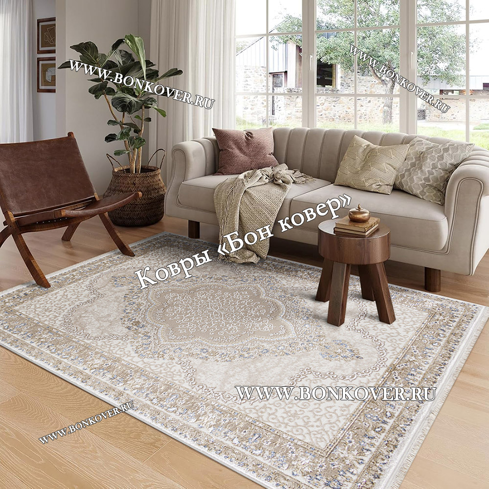 21.04.2022 Читать полный отзывНевероятной красоты ковер, действительно с белым оттенком, как будто седым налетом. Очень интересный замысловатый рисунок, просматриваются бежевые и серо-бежевые тона, просто украшение комнаты!) Огромное спасибо замечательной компании Бон Ковёр! Самая крутая компания☺️